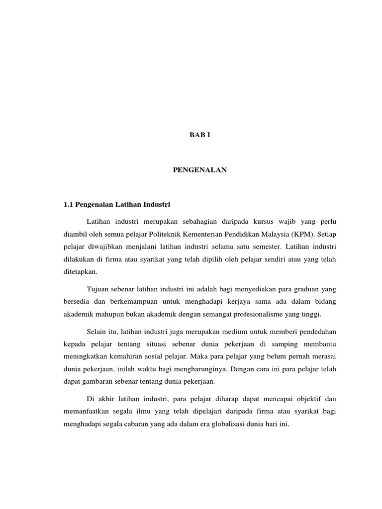 Penilaian jurnal refleksi adalah 20 dari keseluruhan penilaian latihan industri. Contoh laporan akhir latihan industri jabatan perdagangan docx d4pq08rgernp. Laporan Penuh Latihan Industri Pelajar Politeknik Perdagangan 1.